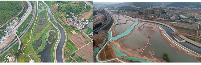 4.楚雄市龍川江西觀橋斷面水體達(dá)標(biāo)工程,通過實(shí)施污染底泥疏浚、橡膠壩、生態(tài)河堤建設(shè)、生態(tài)濕地恢復(fù)等一系列水環(huán)境治理及水生態(tài)修復(fù)工程,龍川江西觀橋國控斷面已于2019年從重點(diǎn)整治的劣Ⅴ類國控斷面之一脫劣,提前一年達(dá)到水環(huán)境功區(qū)劃IV標(biāo)準(zhǔn)。