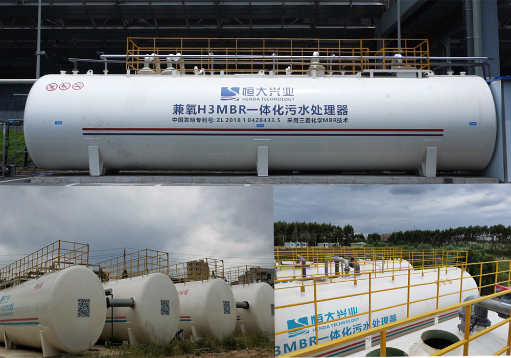 (二)由我司自主研發(fā)的智能兼氧H3MBR一體化污水處理器(中國發(fā)明專利號:ZL2018 1 0428433.5),采用三菱化學(xué)MBR膜技術(shù),結(jié)合間歇曝氣和間歇進(jìn)水完成脫氮除磷,去除有機(jī)物,并通過三菱化學(xué)MBR膜組件進(jìn)行泥水分離,產(chǎn)水穩(wěn)定達(dá)到一級A排放標(biāo)準(zhǔn)。主要應(yīng)用于市政污水、產(chǎn)業(yè)園區(qū)污水、方艙醫(yī)院、城鎮(zhèn)新農(nóng)村生活污水等諸多場景生活污水的處理與回用。