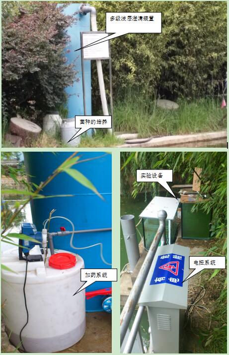 項(xiàng)目采用有效微生物菌技術(shù)結(jié)合循環(huán)凈水工藝對(duì)小型湖泊、池塘、水庫等污染匯富營養(yǎng)化水體進(jìn)行原位、異位結(jié)合修復(fù),首次提出了富營養(yǎng)化水體藻菌共生概念,快速建立水體生態(tài)自凈平衡系統(tǒng),實(shí)現(xiàn)對(duì)水體富營養(yǎng)化的根本治理。通過對(duì)天然沸石超微改性后,配合常用凈水劑復(fù)合制得物理型助凝劑(JYX-助凝劑),吸附、脫色、助凝等功能優(yōu)異,可有效吸附水中氮磷。研制出漂移式多功能凈水設(shè)備,集凈化除藻、投菌、充氧、噴泉景觀等功能于一體,具有節(jié)能、降濁、除藻效率高、投資少等優(yōu)點(diǎn)。利用該工藝處理后的水質(zhì)符合地面水環(huán)境質(zhì)量標(biāo)準(zhǔn)中的Ⅲ類水質(zhì)標(biāo)準(zhǔn)。