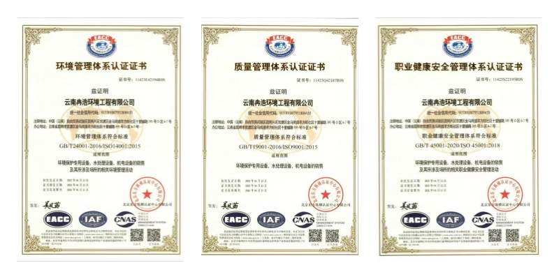 公司通過了ISO9001質(zhì)量管理體系、ISO14001環(huán)境管理體系、ISO45001職業(yè)健康安全管理體系、AAA企業(yè)信用認證、多種產(chǎn)品專利、安全生產(chǎn)標準化企業(yè)、云南省科技型中小企業(yè)等多項證書。